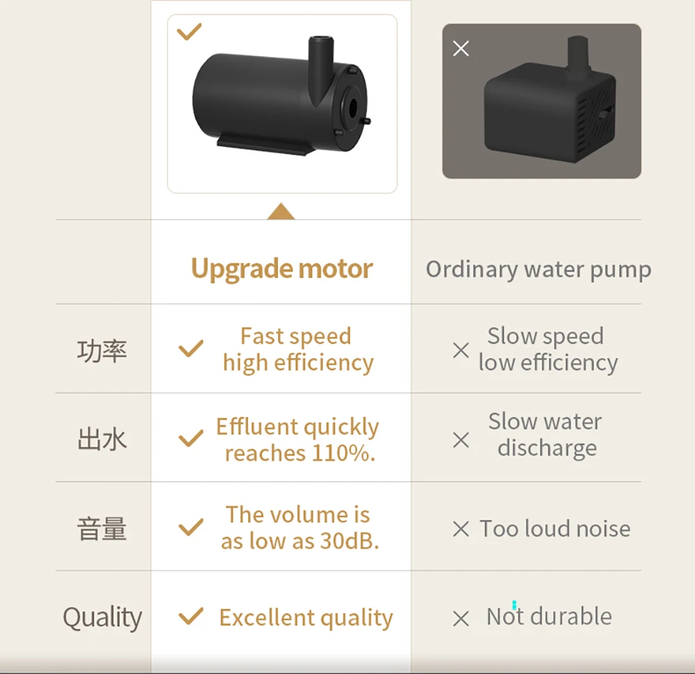 Os animais de estimação são facilmente assustados por ruídos não identificados.Notamos isso e melhoramos esse defeito para não assustar os animais de estimação que estão perto de beber.Com esta melhoria, mesmo quando está funcionando e à noite, não perturbará o sono.Adaptador não está incluído!